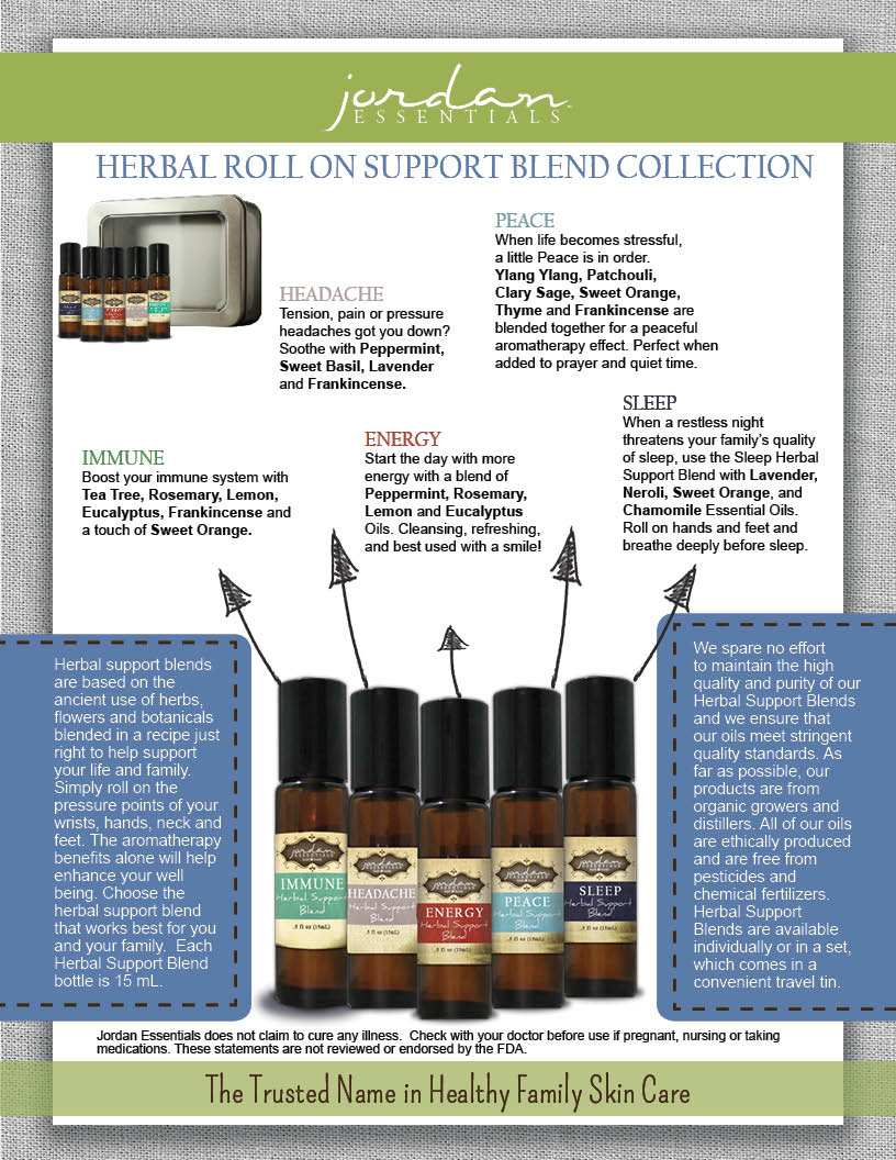 Sleep: When a restless night threatens your family’s quality of sleep and there are no sugar plumb fairies dancing in their heads, use the Herbal Support Blend Sleep with Lavender, Neroli, Sweet Orange, and Chamomile Essential Oils. Apply to hands and feet and breathe deeply before sleep.